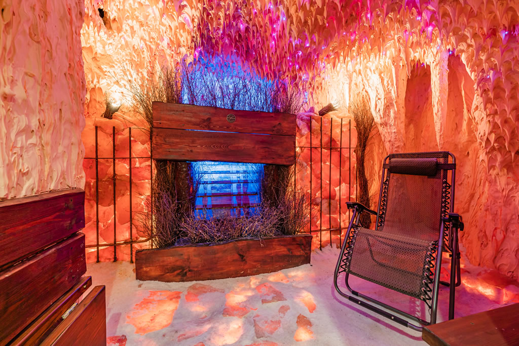 Minisiłownię (atlas, rowerek spiningowy, orbitrek, bieżnia, drabinka, ciężarki i ogromne lustra), a także grotę solną z tężnią i kącikiem zabaw dla maluchów, solarium tuba z bryzą i kolagenowymi lampami.