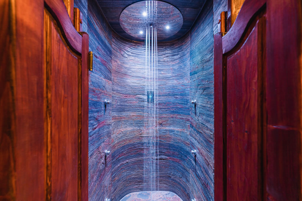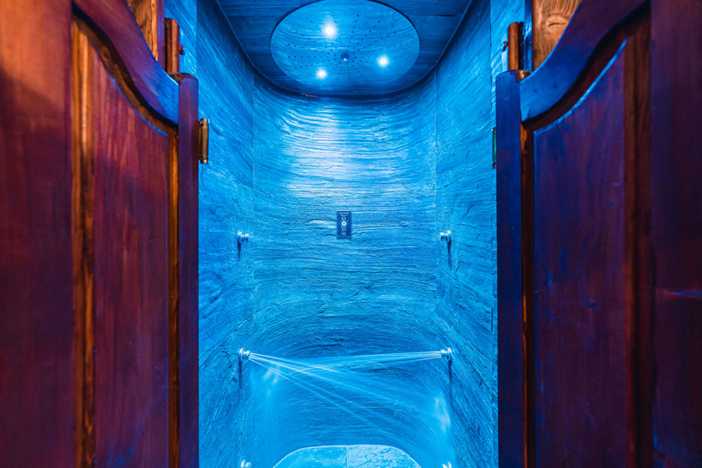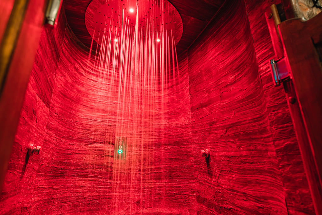 Fińska sauna + bardzo zimny prysznic i relaksacyjny bujak, prysznic wrażeń z trzema programami do wyboru (syberyjska burza, tropikalny deszcz, ciepło-zimno) oraz jacuzzi dla 5 osób z kaskadą.
